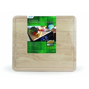 Camco RV Stoveaway Topper Cutting Board is designed to eliminate rattles and add an attractive cutting board to the RV kitchen. This board doubles as a serving tray. and won't nick or dull knives. It has a non-skid backing that holds the board in place. This board has selected hardwoods and is treated to preserve as well as enhance the natural wood's beauty. It fits 3 or 4 burner stoves.